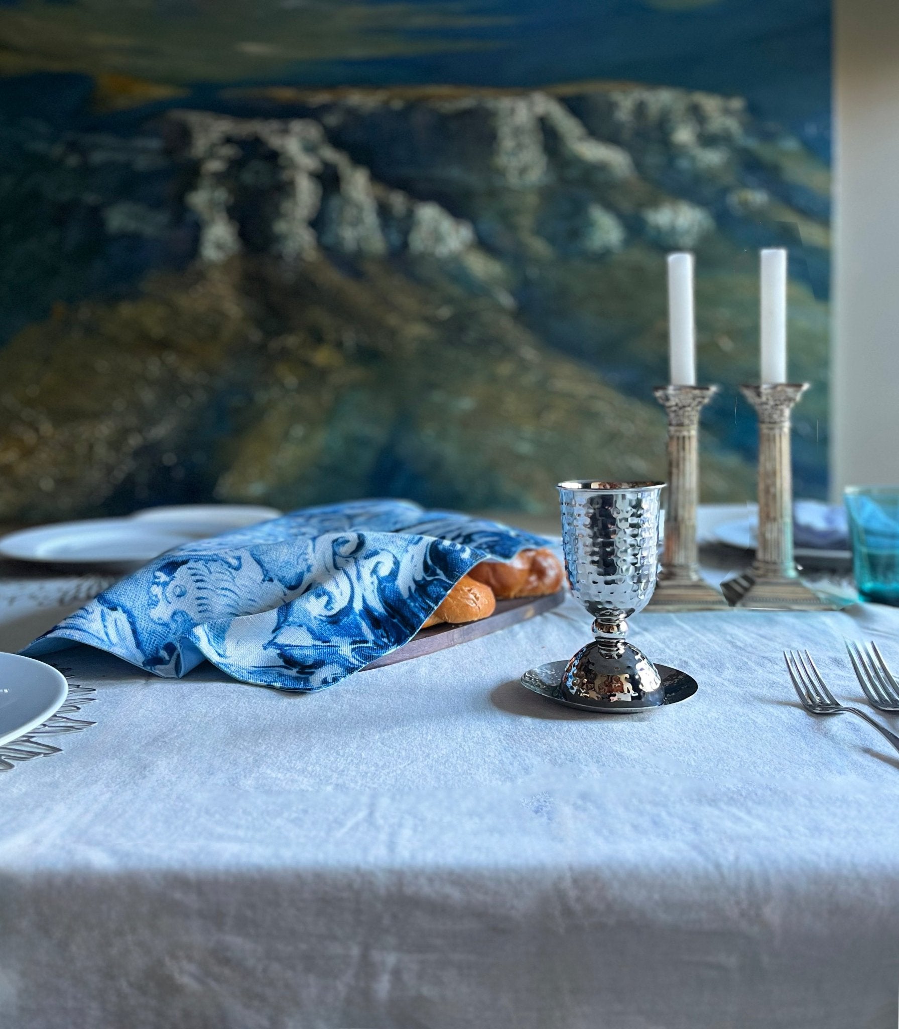 Digitally printed on high-quality linen-textured fabric, the challah cover is fully underlined with a poplin fabric, adding both structure and reflective colour.